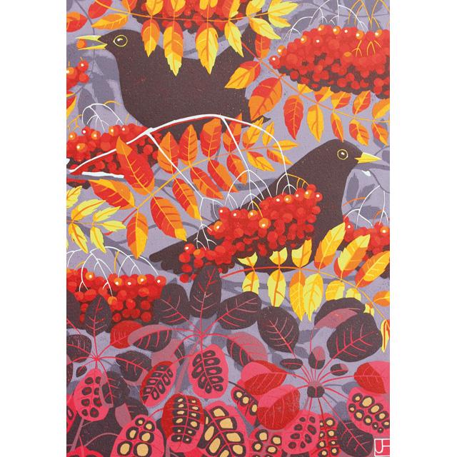 Blackbird Amongst The Berries Card