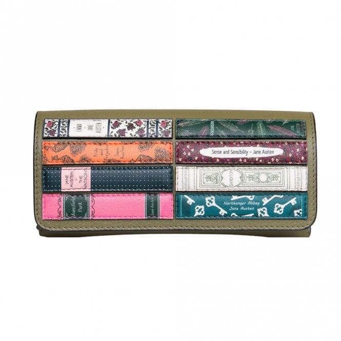 Olive Vegan leather glasses case from Yoshi with Jane Austen Book Lovers applique.